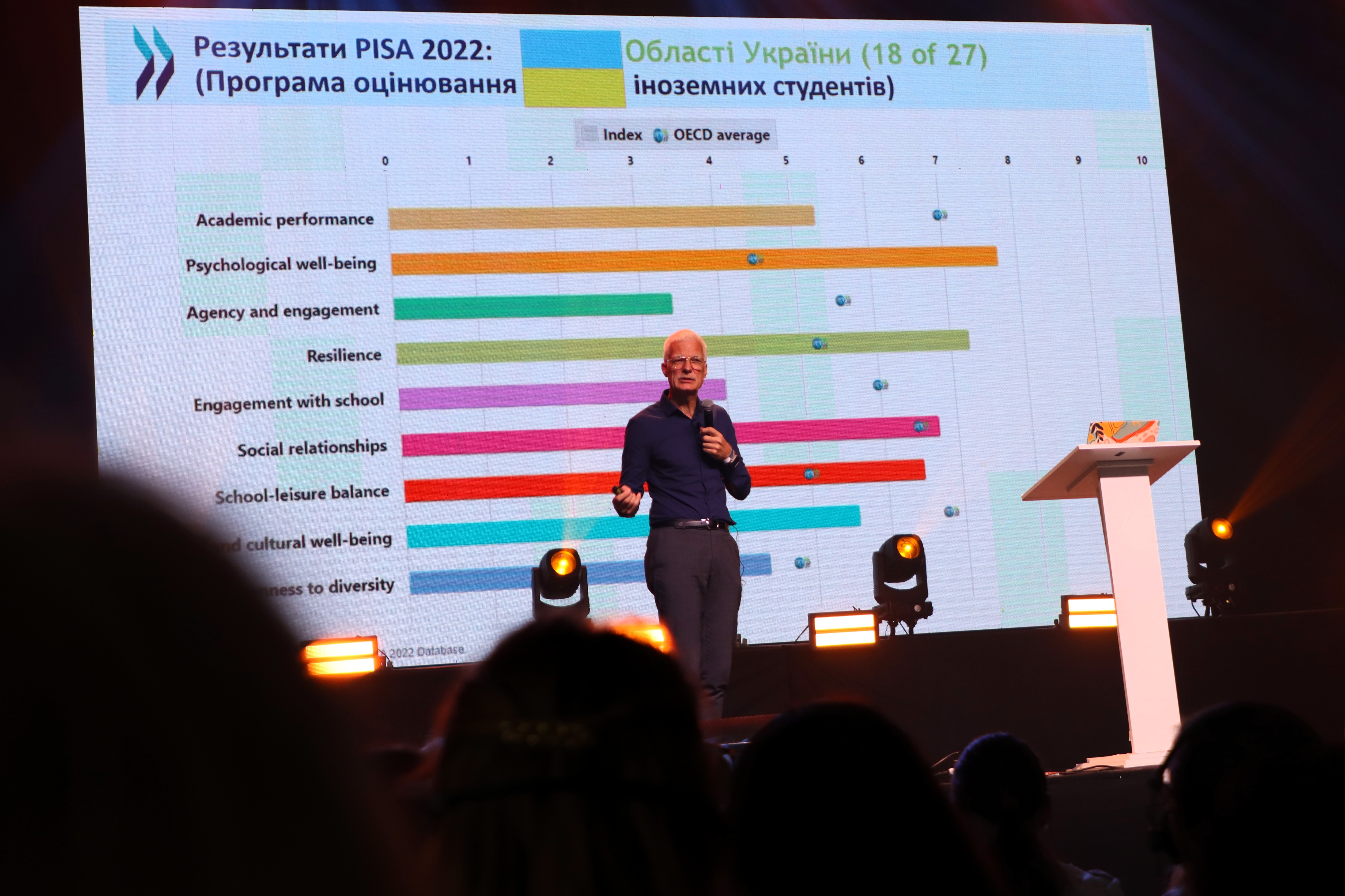 I joined the 2,300 teachers and school leaders attending and witnessed a true celebration of resilience, innovation and vision. Some of the teachers attending travelled 30 hours to get to the venue, many had to pay for their travel, and all of them used their vacation days to join colleagues in person. I frequently took part in debates and listened in to conversations about how to help students find and leverage their talents, and to help them understand what Ukraine needs from them, now and in the future.